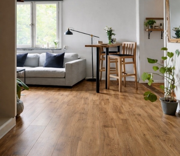 Laminate flooring replicates the look of natural oak, walnut, and other timber finishes, giving homes a warm and modern appearance.