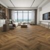 Luxurious living room with dark hybrid flooring, modern furniture and elegant interior design in Perth
